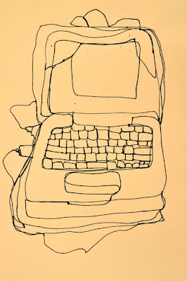 I brought in a bunch of old cameras (and my computer!) and did some blind contour drawings of each one. I am thinking of doing the same thing with an old beach cruiser, and other vintage things around my house.
