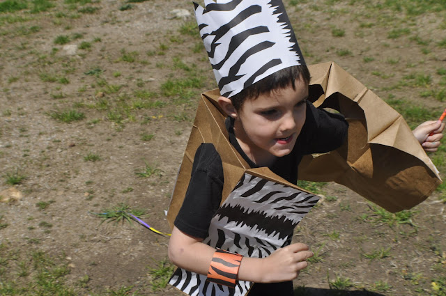 For the photos below....my students made bird kites (the kites and animal print papers are from Roylco)...and then they created safari vests using a paper bag covered with animal print paper, crowns, and jewelery...and we took the kites outside for a kite flying safari adventure. It was so fun for me, but mostly, it was rewarding to see them having fun.